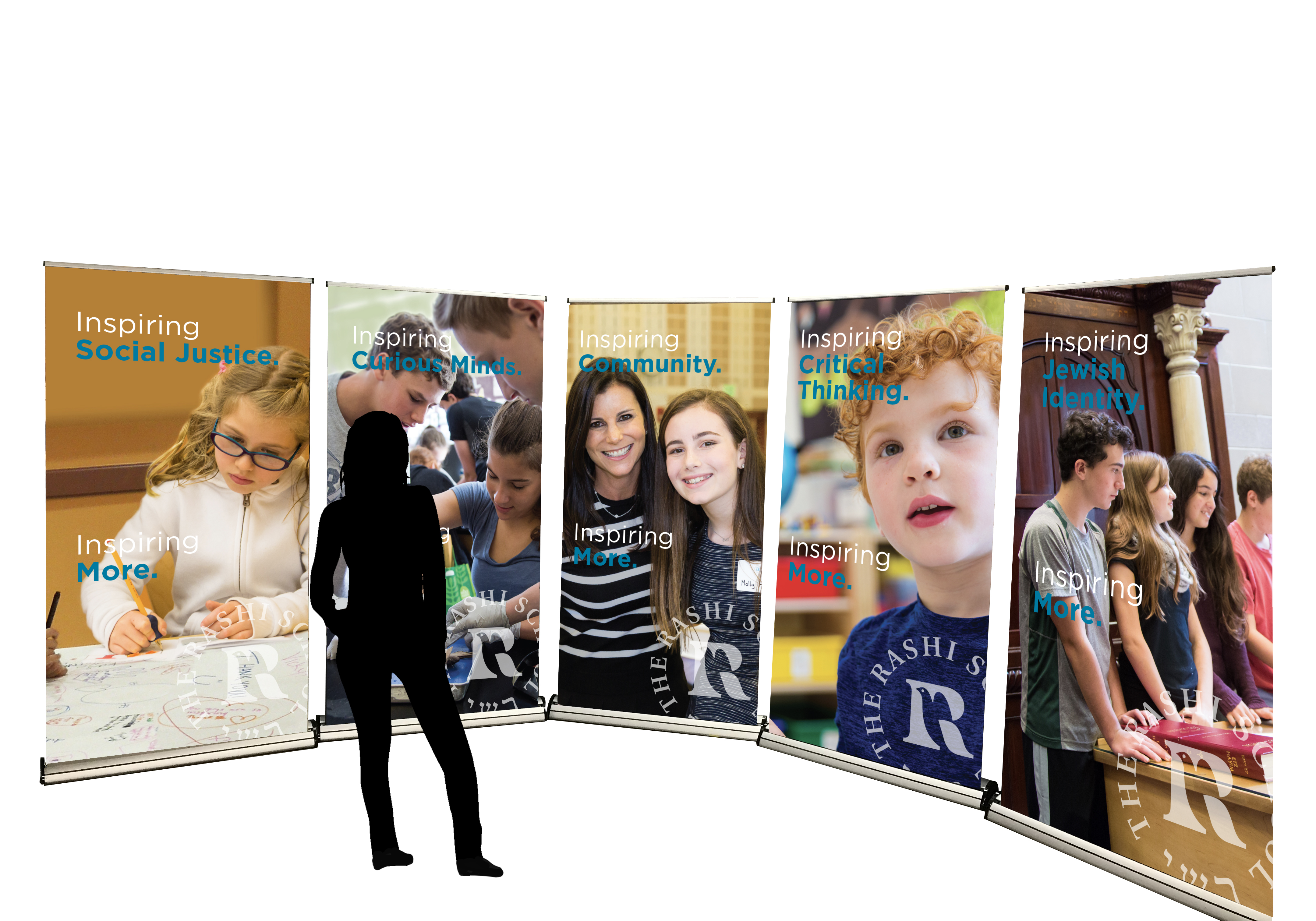 Large format can be powerful and they help support complex campaigns achieve a stronger effect on people. These posters for The Rashi School (40x74) were displayed during their annual dinner.
